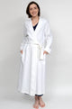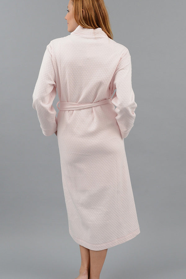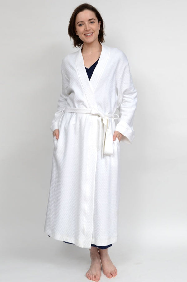 Turn your bathroom into a getaway spa with this luxurious 48" bathrobe. Two inseam pockets, ultra soft pima cotton combined with a touch of nylon makes this an easy care robe. Light, but warm robe to wear after a bath or shower. Wear it over a pair of our pajamas or sleep shirts. The color palette is soft and looks great on any complexion and looks great hanging on the back of the bathroom door.