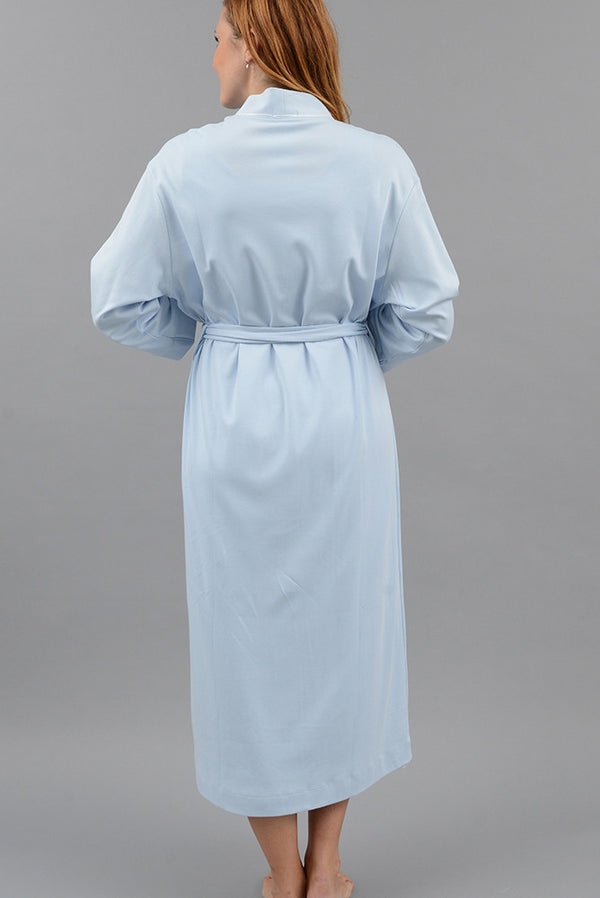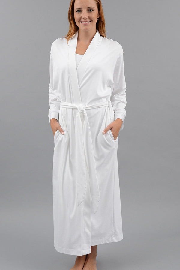 The perfect piece to complement any of our gowns or pajamas. From the shower to the bedroom, this robe will keep you warm and stylish. The Long Kimono Robe boasts lightweight 100% Pima cotton, with the belt sew in to the back, and 2 pockets.