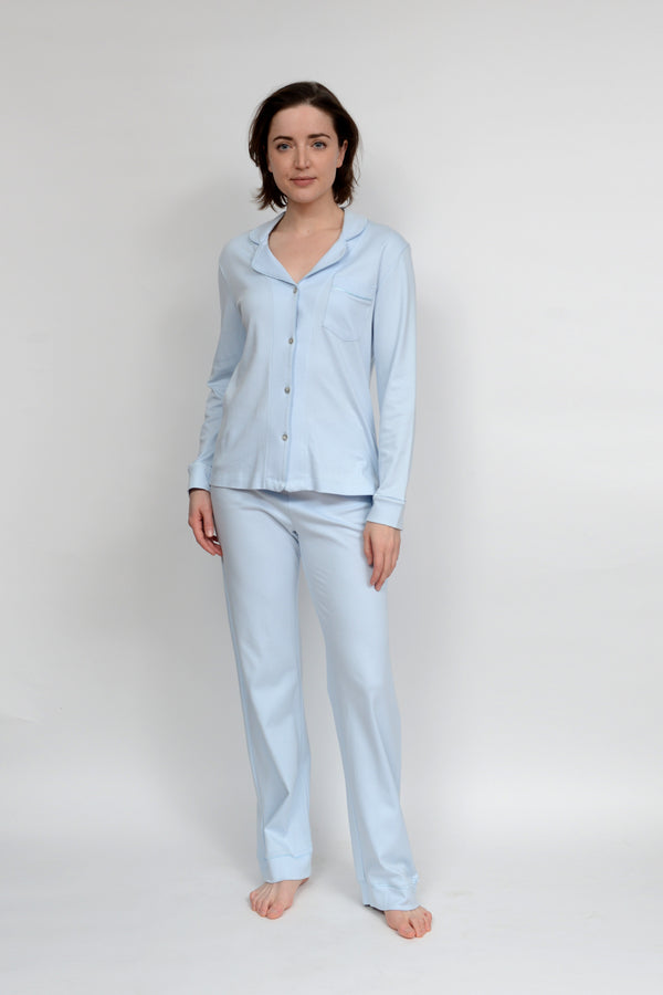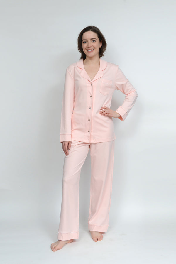 This Cotn Collection best-selling pajama is inspired by the elegance of a men’s tailored shirt, making it your favorite go-to nightwear. Designed with thoughtful details — five buttons, satin piping, and a satin drawstring — it blends timeless style with effortless comfort. Look as good as you feel, night after night.