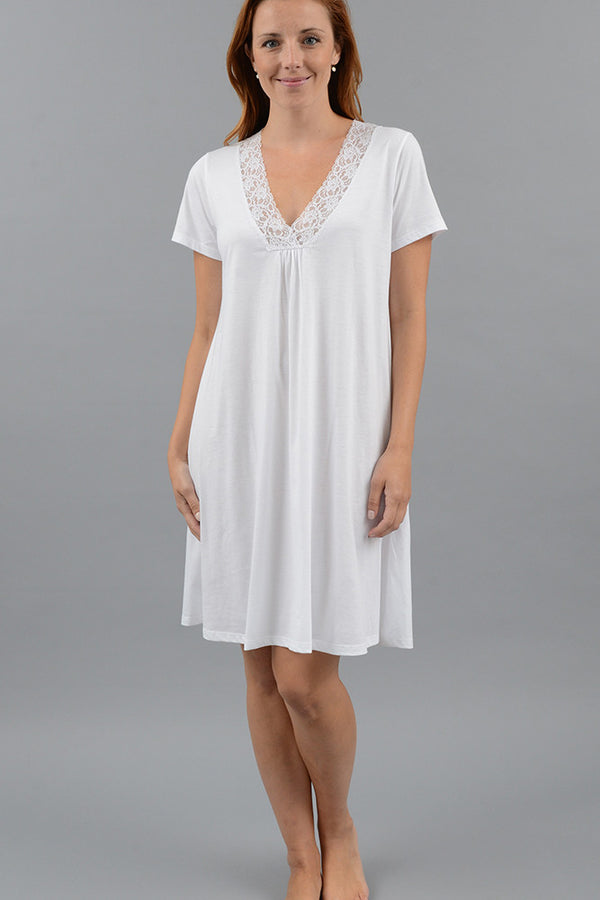 Featuring a lighter weight of your favorite Pima Cotton knit, The 36" Lace V Neck Gown will be your favorite for hot summer nights. This gown is patterned after our best selling V-neck classic styles to be very comfortable with just the right touch of lace, and lightweight feel.
